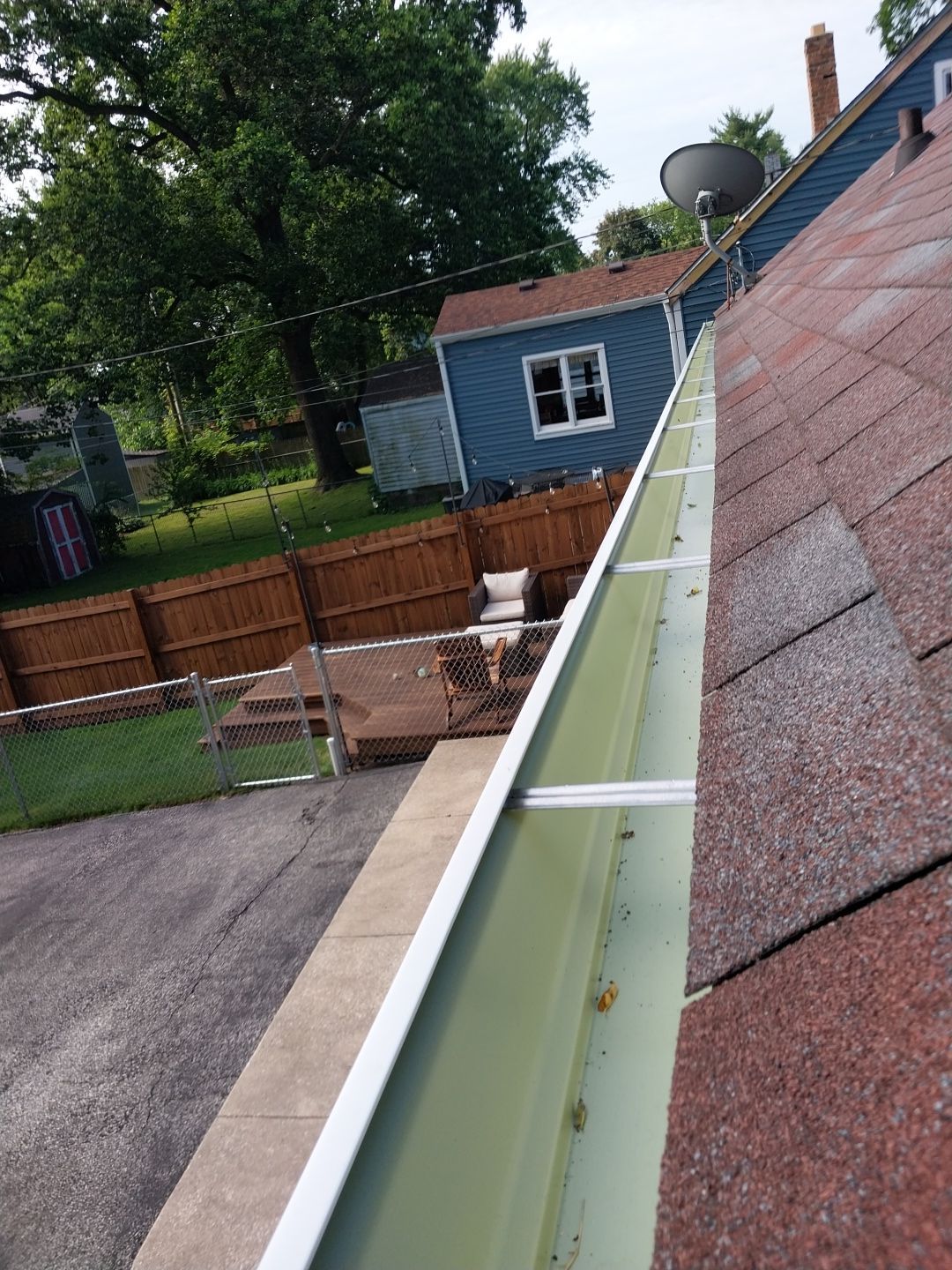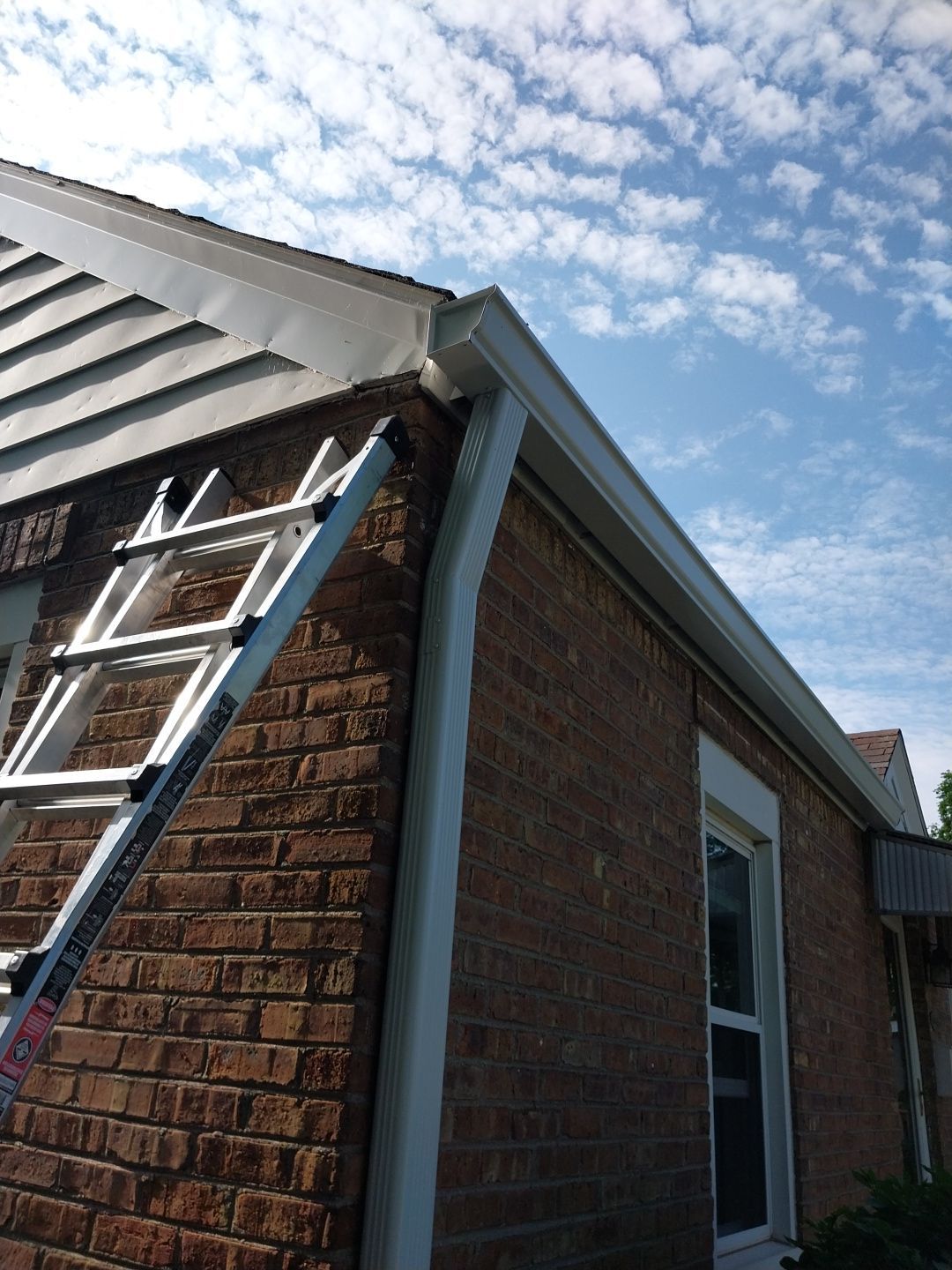 The customer called us out for a gutters consultation and some repair work on this one in Valparaiso. Jimmy put together a comprehensive fascia repair, roof repair, and gutters install on both the house and garage. Unfortunately, the 3 tab shingles on the customer's home were discontinued, but we were able to find a shingle that blended in to the best of our ability. Just look at that Gorgeous gutter install!