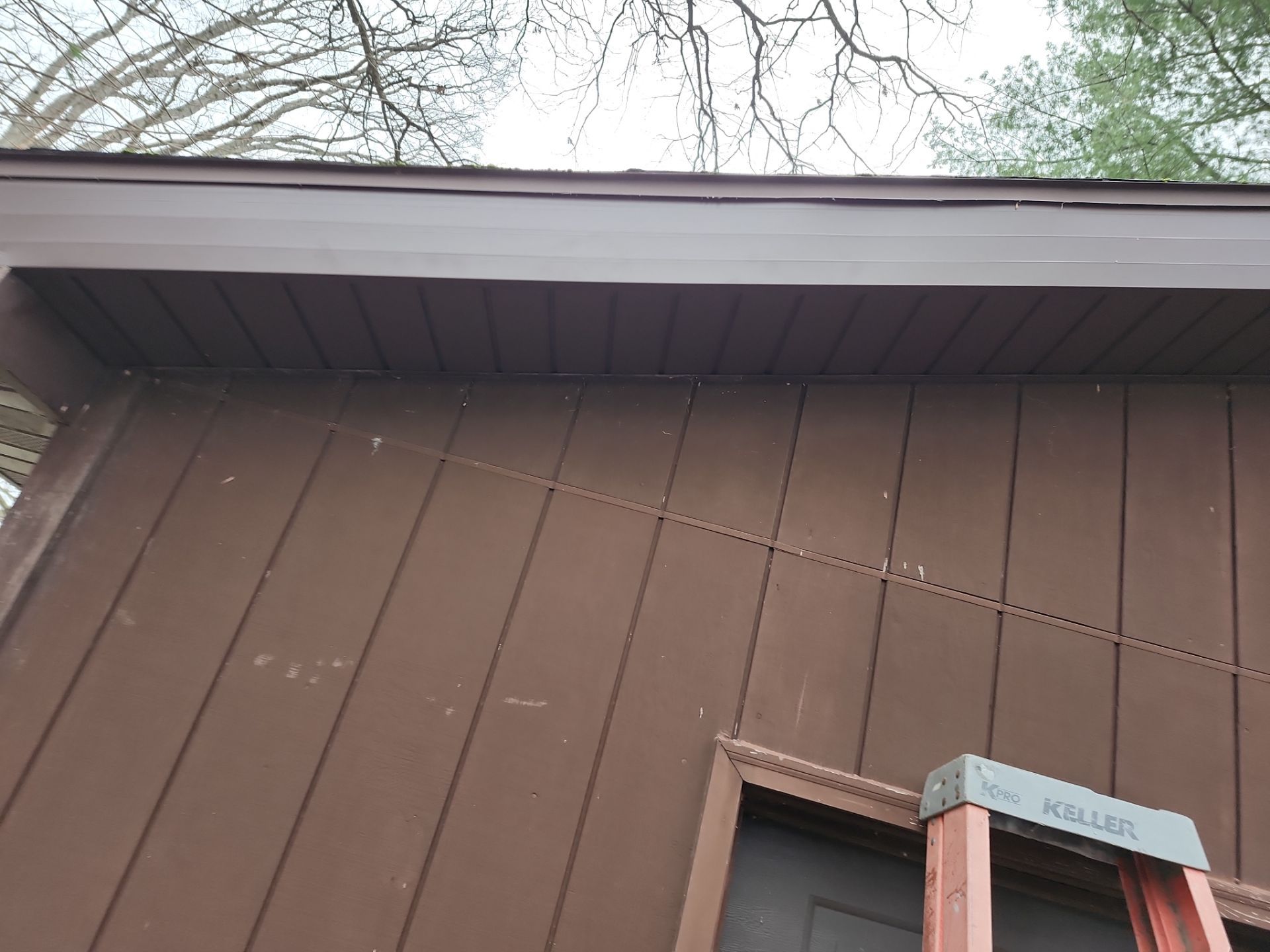 This is a repair job we completed for repeat customers who have used us occasionally over the years. We did some fascia and soffit repairs and a little work with tar and membrane around the skylight. The highlight of this repair job was when Dave, one of our installers, was able to highlight his incredible carpentry skills on a decorative wood area outside of the customer's home that had seen better days.
